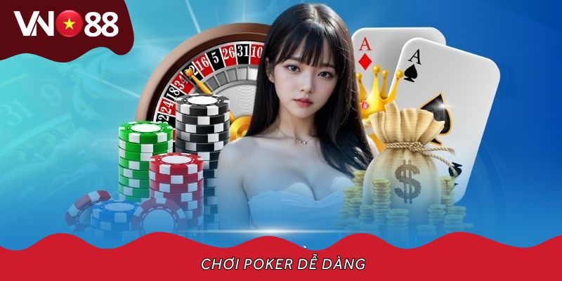 Chơi Poker dễ dàng, dễ thắng lớn là mục tiêu của nhiều người chơi khi mới làm quen với bộ môn này. Với nền tảng hỗ trợ từ VN88, bạn sẽ tiếp cận Poker một cách bài bản, rõ ràng và hiệu quả hơn từ luật chơi cơ bản đến kỹ năng nâng cao, Hãy cùng tìm hiểu ngay cách để làm chủ mọi ván bài được chia sẻ trong bài viết sau đây.